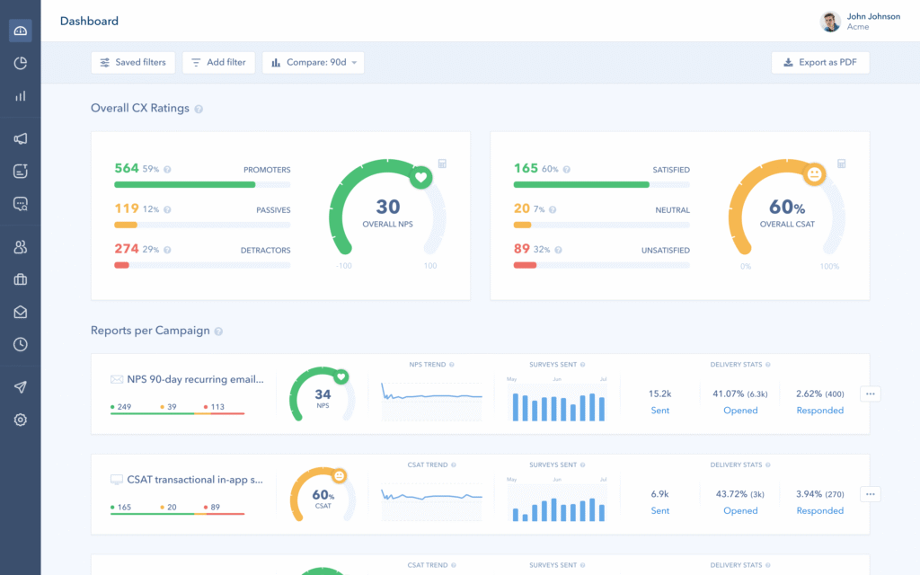 - Actionable playbooks: Set up follow-up actions. For example, automatically email any detractor within 24 hours.