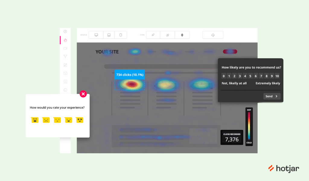 - Identifying friction points: Through recordings and heatmaps, Hotjar helps pinpoint where customers encounter roadblocks or frustration.