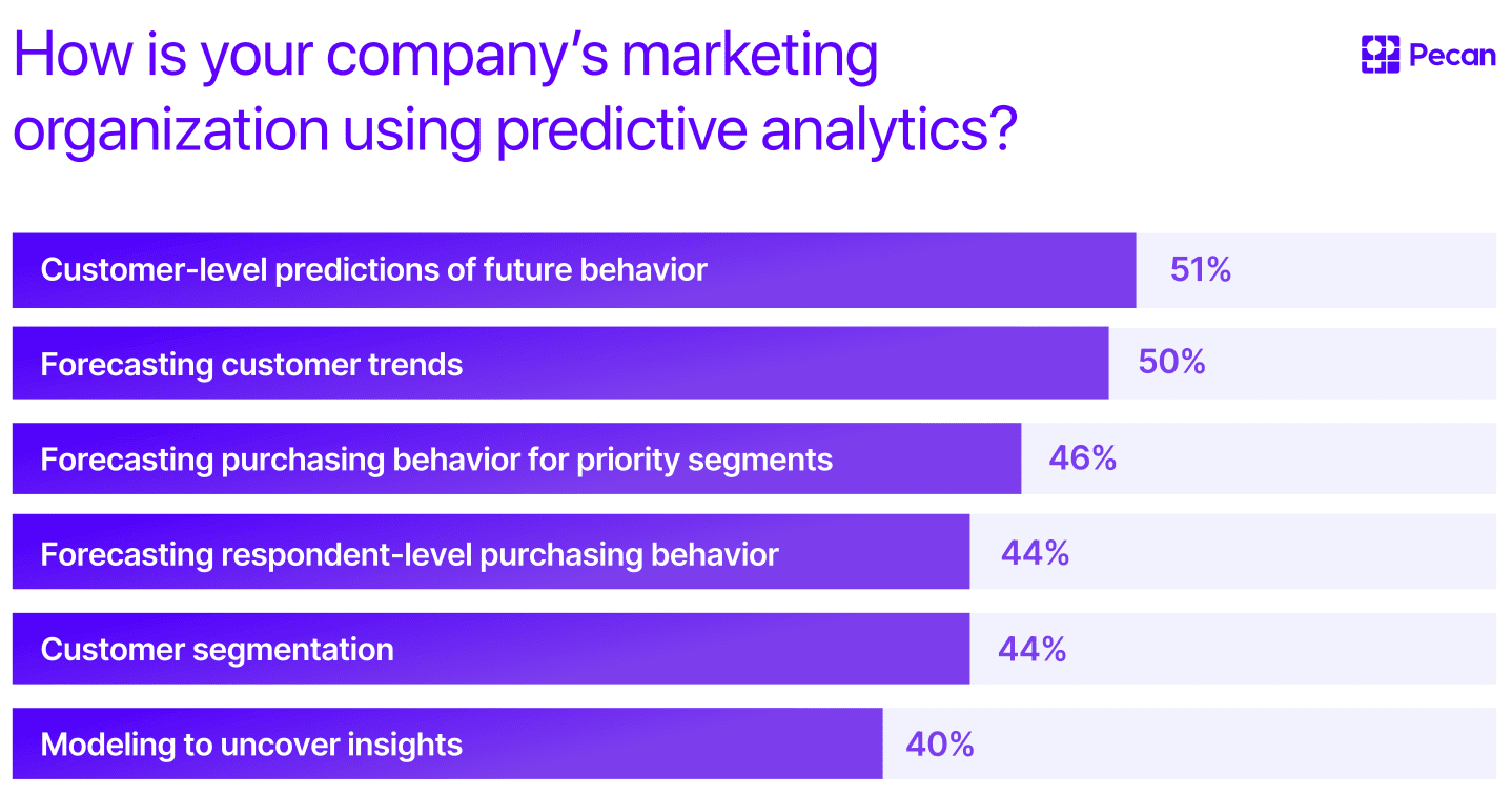 However, marketing teams face various challenges in fully adopting this technology. With no universal playbook for integrating data science into marketing, multiple strategies have evolved to implement predictive analytics. Those approaches have seen varying success levels.